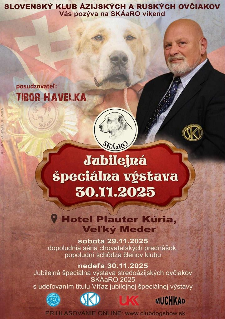 V nedeľu 30.11.2025 sa bude vo Veľkom Mederi konať Jubilejná 30. špeciálna výstava stredoázijských ovčiakov, všetci sú srdečne pozvaní 🙂