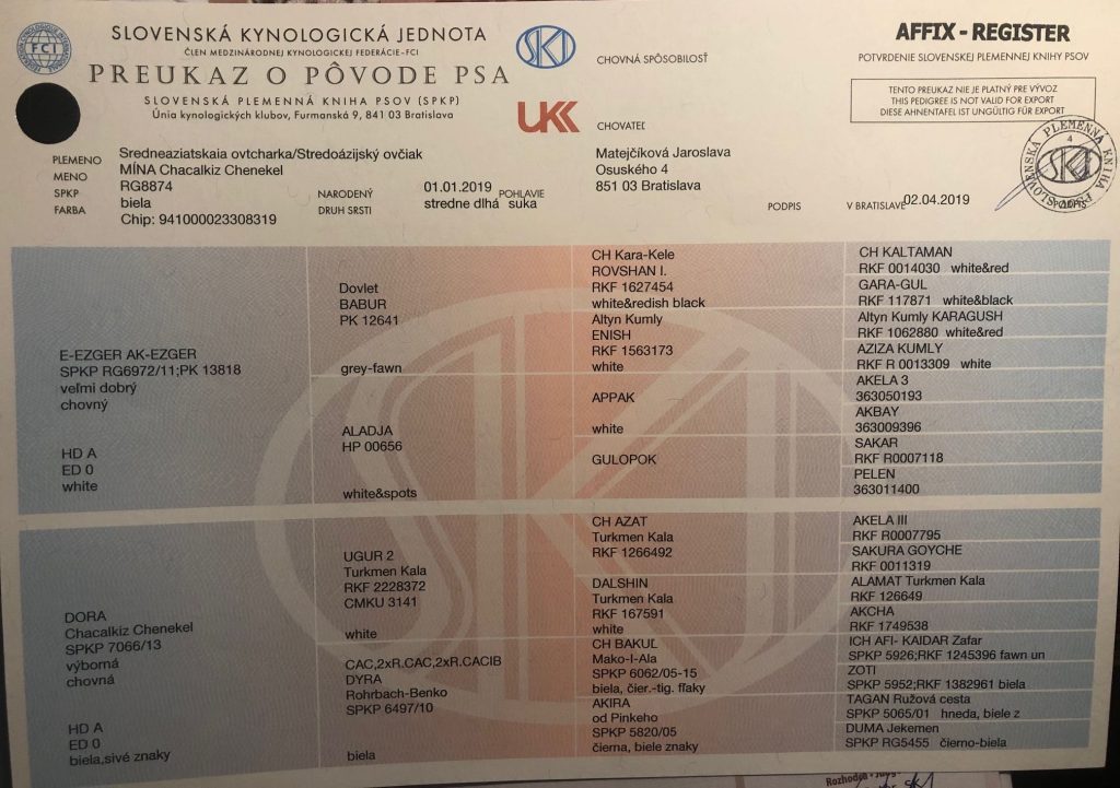 U šteniatok očakávam stabilné povahy, inteligenciu a pevné zdravie. Mína má komplet zdravotné testy, kĺby, lakte, bedrá, chrbticu – všetko čisté: HD 0/0, ED A/A, OCD negat., spond. negat,