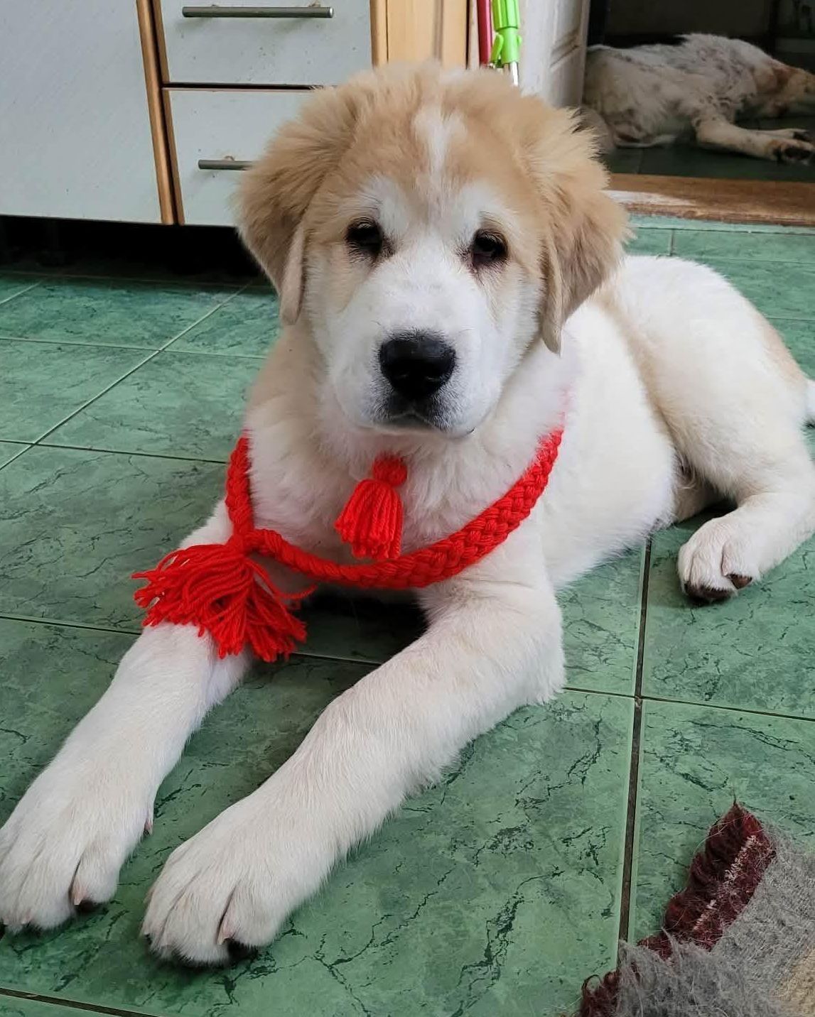 Otcom šteniatok je Dalaj-Nor Buslai, známy ako „Kárpát“, krásny mladý pes z Maďarska